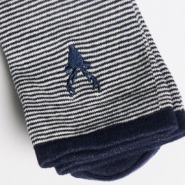 Chaussettes navy élégantes pour femme avec broderie de cerf, parfaites pour un style chic et confortable.